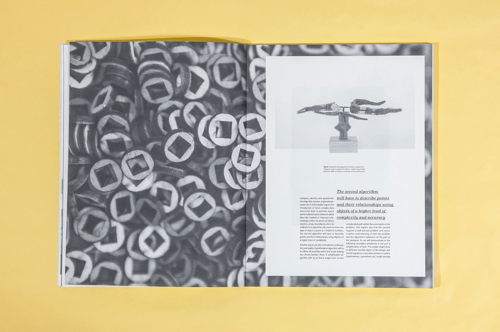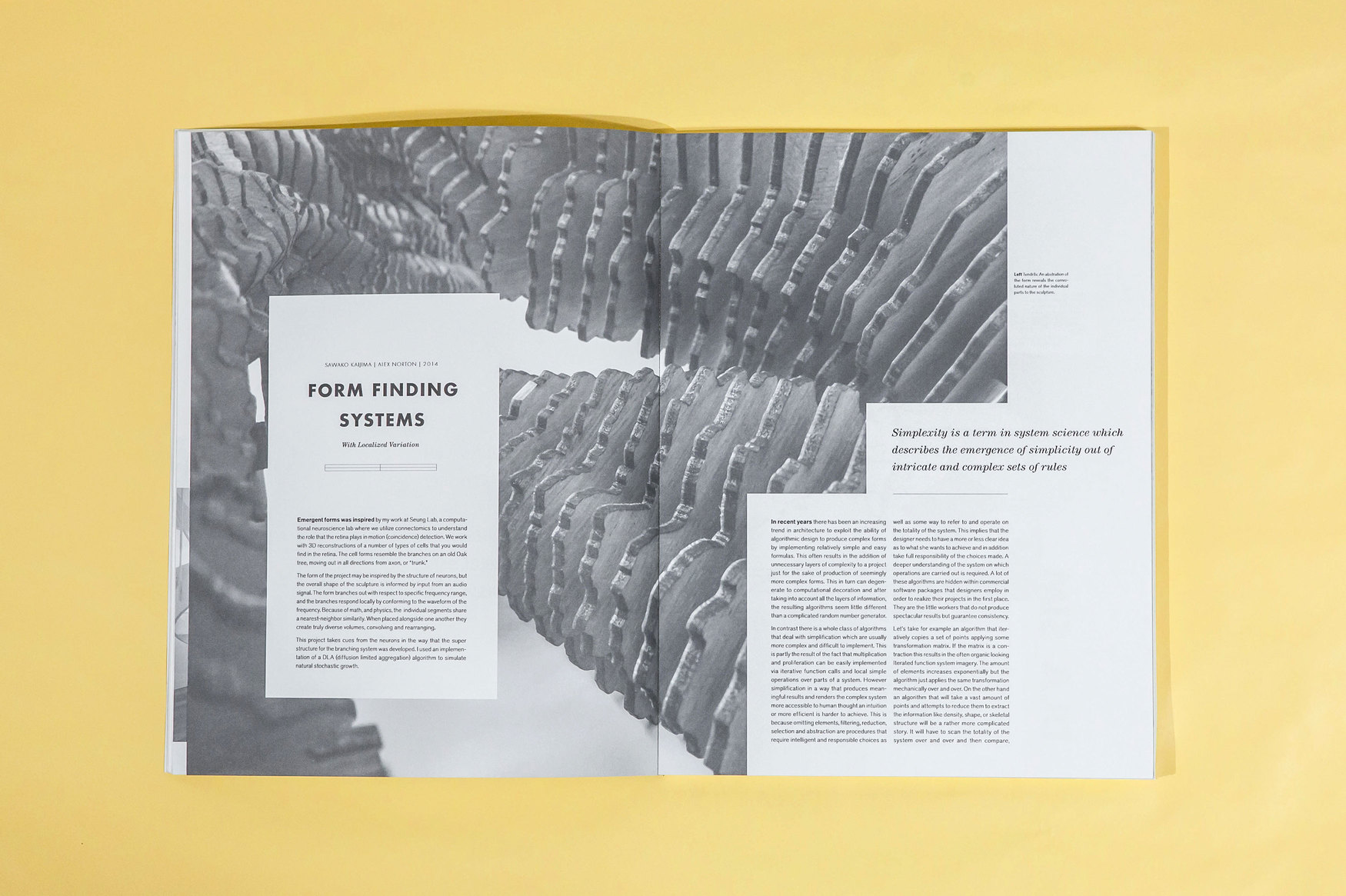 Mu is the East Asian word descibing literally 'nothing', or 'un'. It is very curious that this is nearly the same meaning as the Greek letter 'μ' pronounced 'mu' which in modern academia is reference to a very small measurement. The title is appropriate as this text seeks to distance the design from the final outcome. Both the content and layout of the MuWu are algorithmically sampled. MuWu was sort of my introduction to the possibilities of generative design.