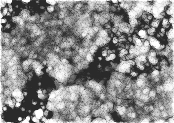 During development, neurons extend their branches by following chemical gradients through diverse tissues. I attempted to simulate this behavior with a swarm of autonomous agents governed by a physical system in Processing. This emergent behavior can be described by a surprisingly simple set of rules.